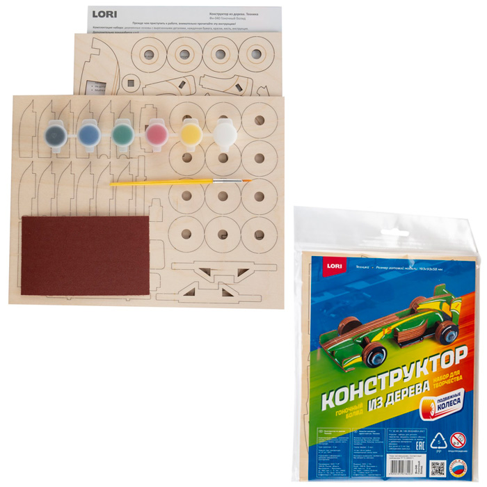Набор для детского творчества «Конструктор из дерева. Гоночный болид» от известного производителя LORI станет отличным подарком для активных детей.
