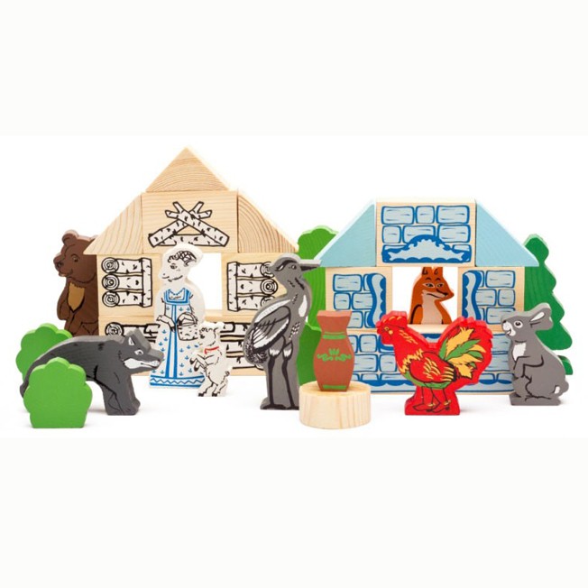 Функционал: сборный конструктор из деревянных элементов, сказочный сюжет