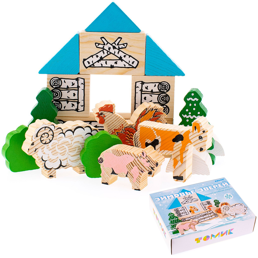 Деревянный конструктор «Зимовье зверей. По мотивам русской народной сказки» состоит из 17 деревянных деталей. С помощью такого конструктора разыгрывать сценки из сказки или придумать свои истории с персонажами. Изготовлен конструктор из древесины. В ходе игры ребёнок развивает моторику, внимание, воображение, тактильное восприятие, а также осваивает цвет и форму.