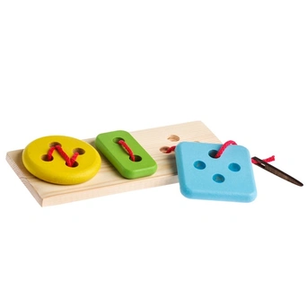 Деревянная шнуровка 610-2 - это красочная развивающая игрушка для обучения шнуровке. Игла в наборе безопасная, а потому малыш не уколется. В комплекте есть шнурок, которым необходимо прикрепить пуговицы к дощечке при помощи иглы. Играя с деревянной игрушкой, малыш будет тренировать координацию и моторику рук, точность глаза и ловкость пальцев. Малыша займет интересная игра со шнуровкой, в процессе которой будут развиваться логика и мелкая моторика рук. Это прекрасный тренажер для освоения навыков продевания шнура в отверстие.