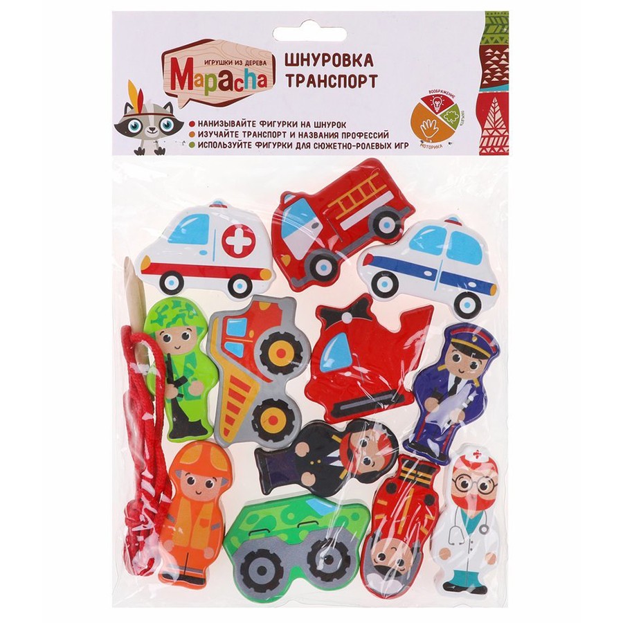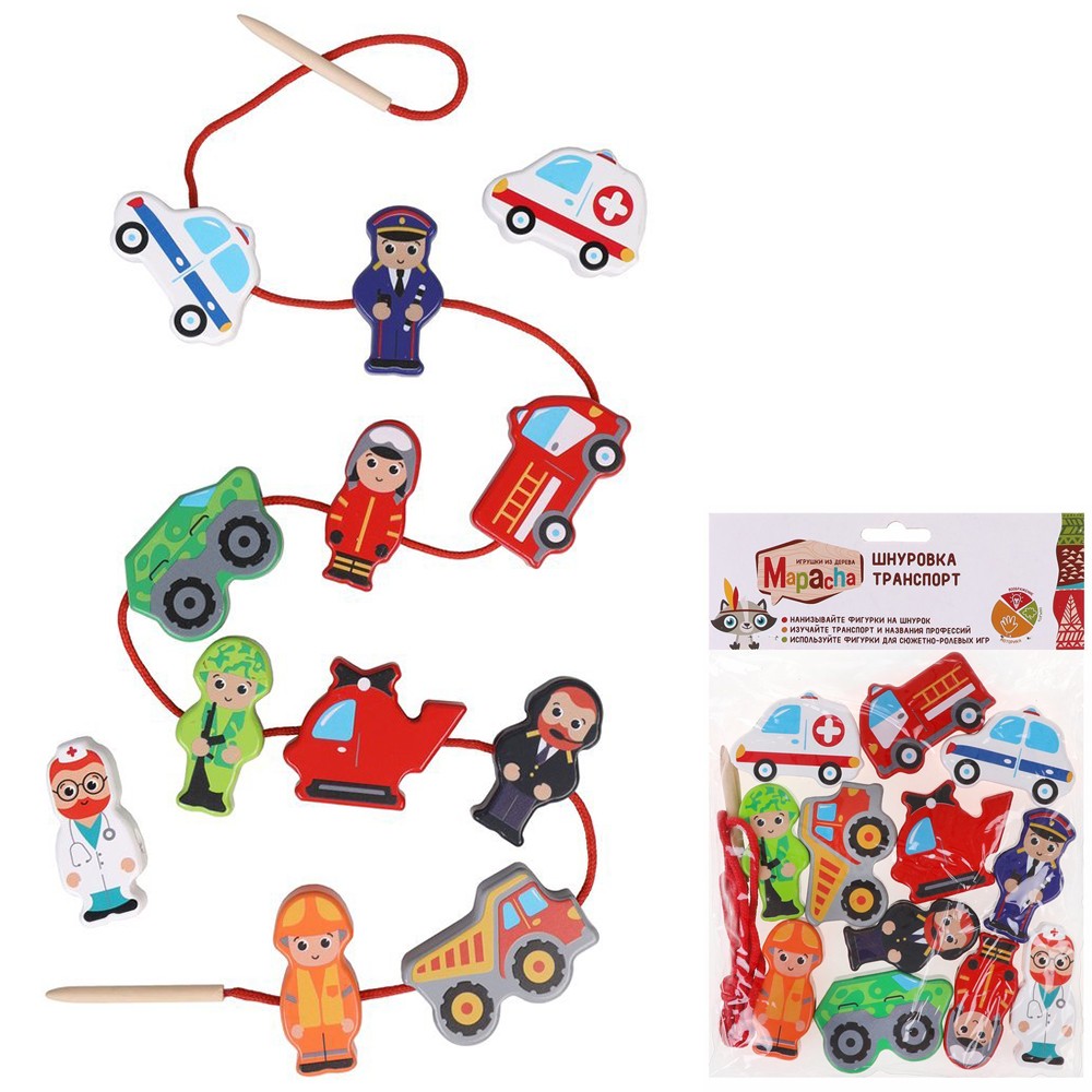 Шнуровка «Транспорт» предназначена для развития у малышей моторики маленьких пальчиков, логического мышления, внимательности и усидчивости. Фигурки можно использовать не только для нанизывания на шнурок, но и для разнообразных сюжетно-ролевых игр.