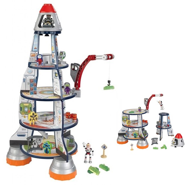 Комплектация: стационарная космическая станция, ракета, грузовой кран, космонавты, роботы, инопланетяне, компьютеры, центры управленияМатериал: МДФ, дерево, пластик.