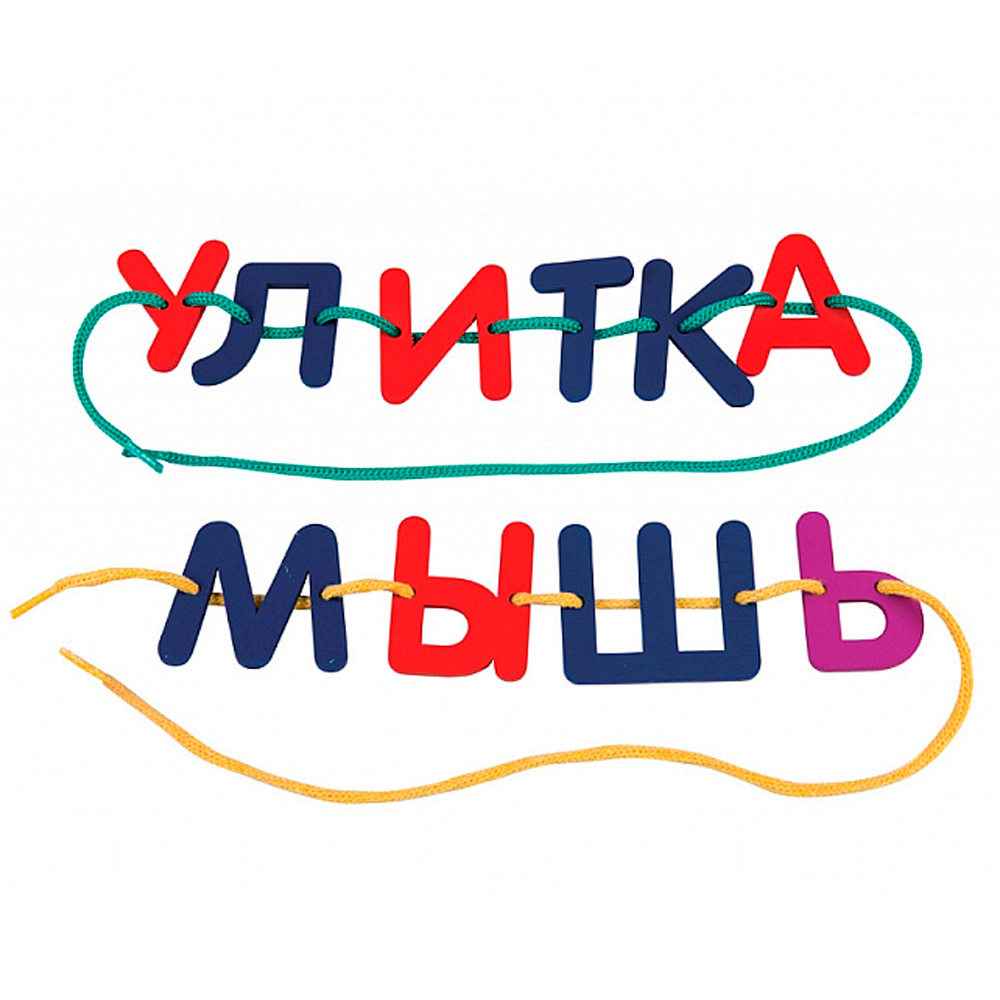 Игра из дерева «Алфавит на шнурочке» — развивающая логическая игра для знакомства с буквами русского алфавита и развития навыков чтения.