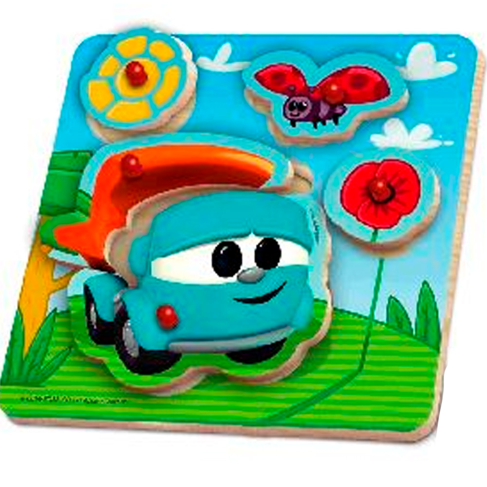 Деревянная игра состоит из основы и различных фигурных элементов, которые нужно располагать по принципу рамок и вкладышей.