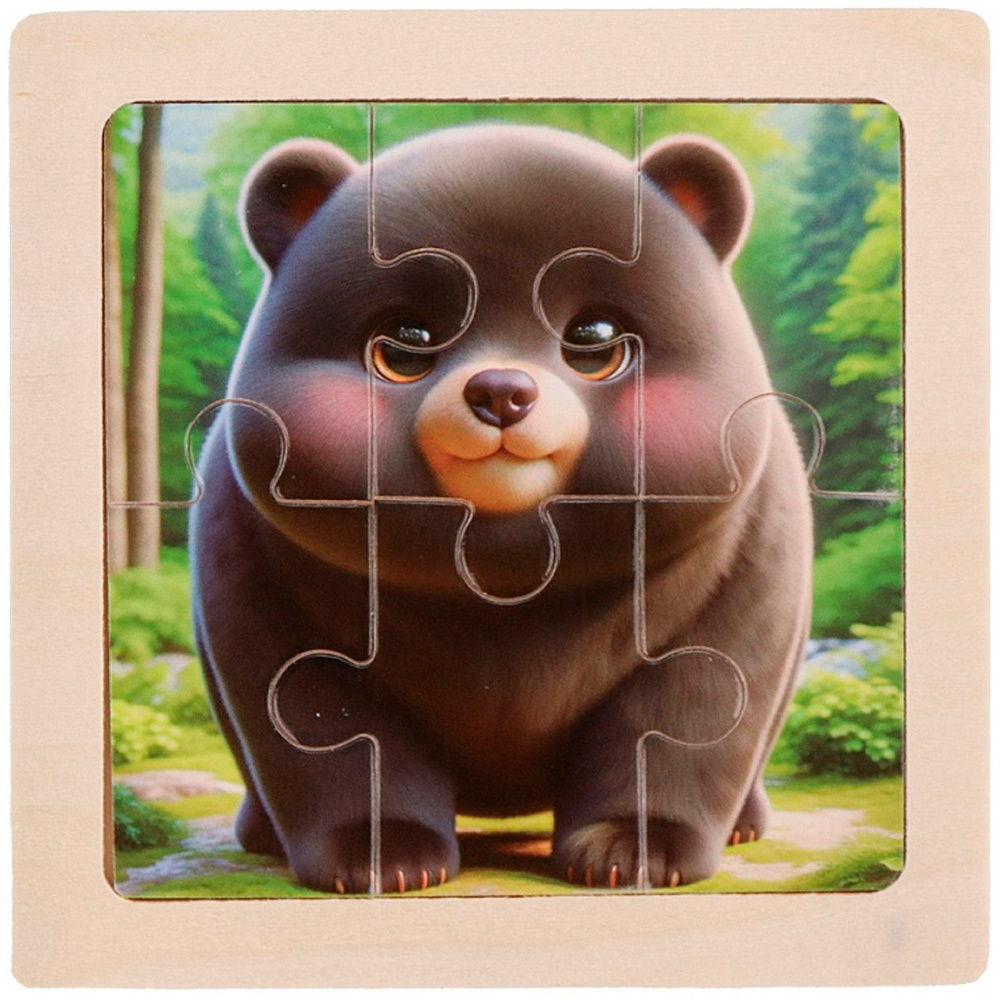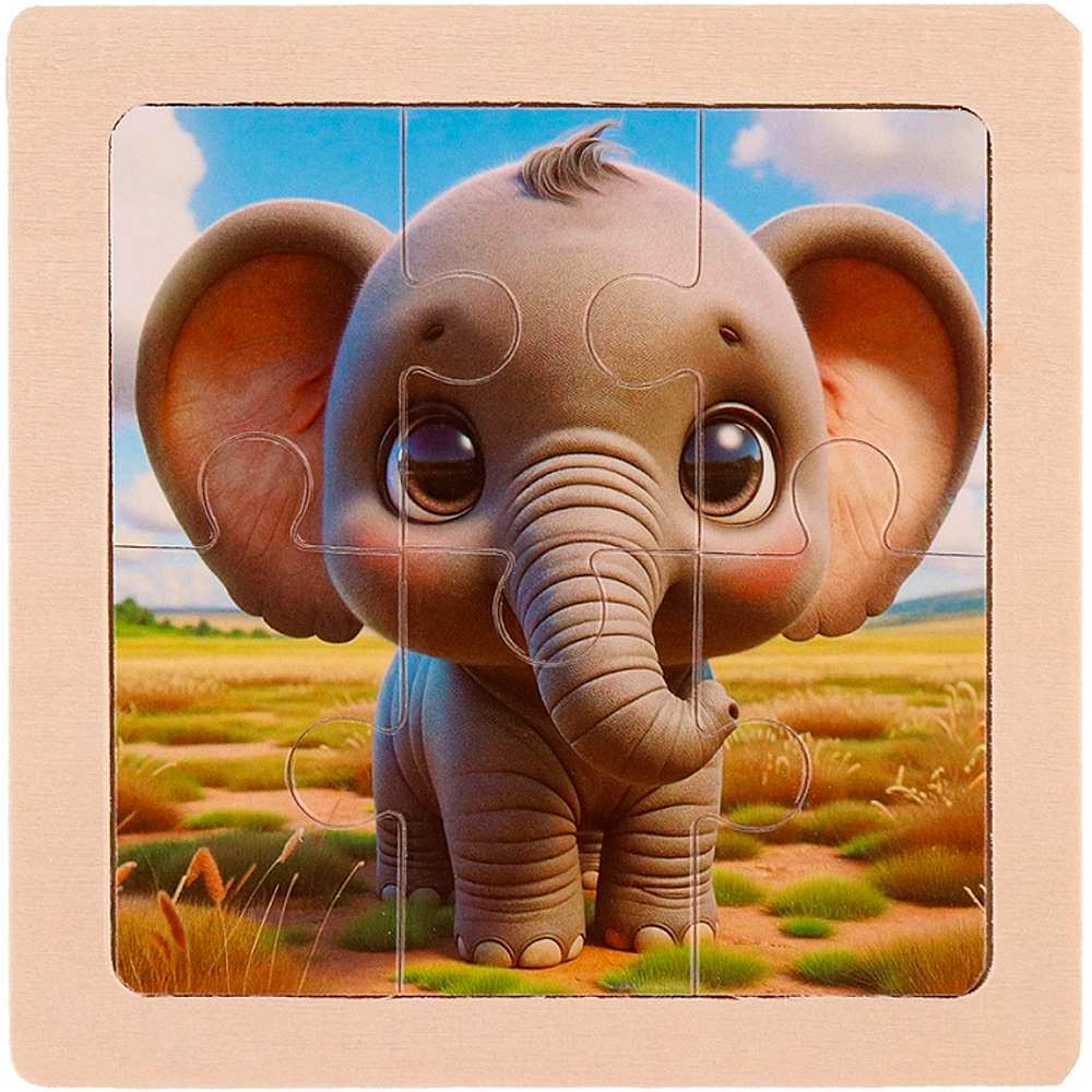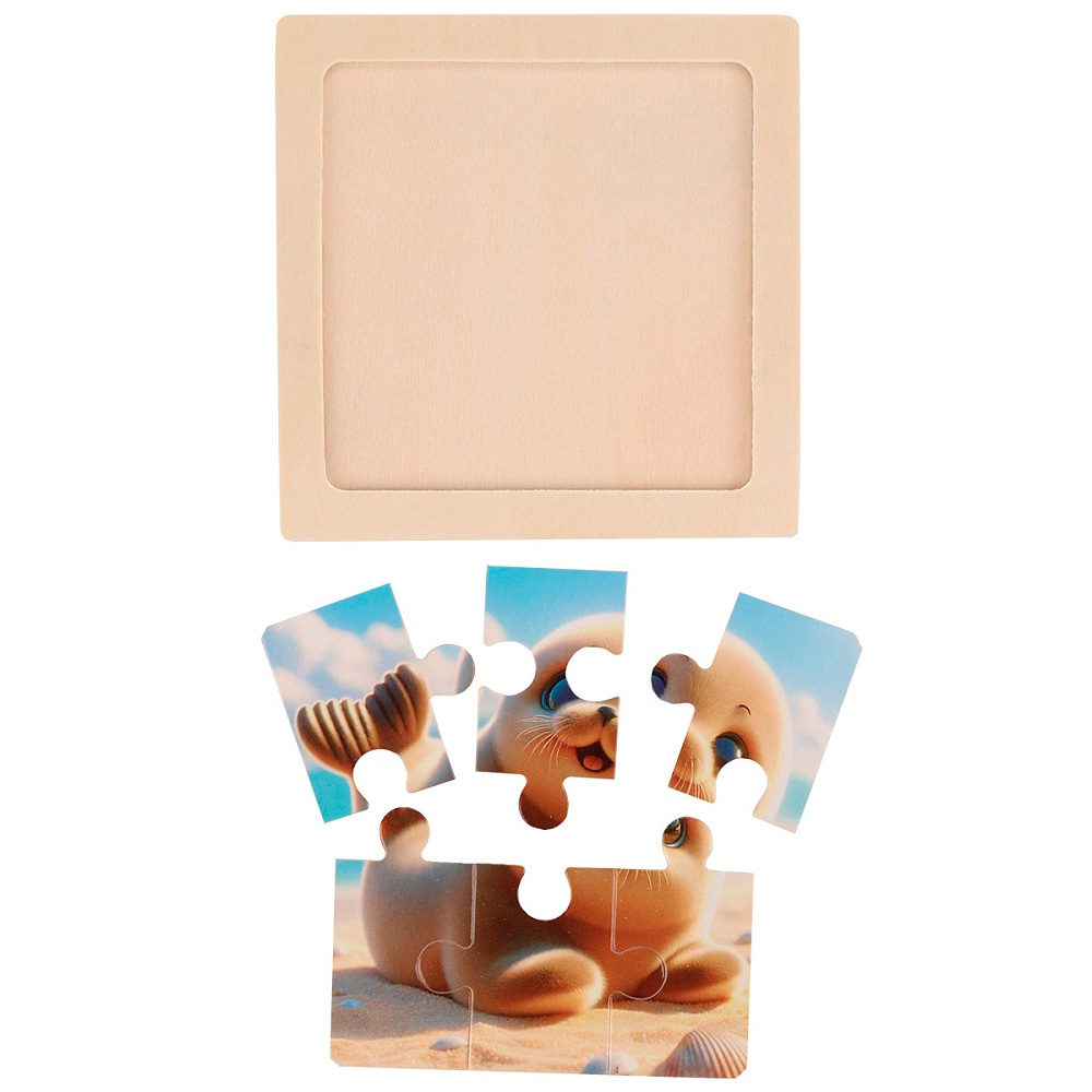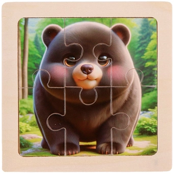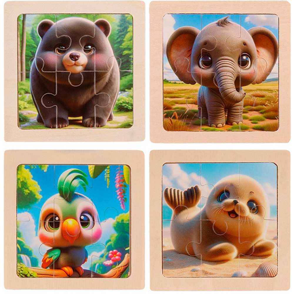 Деревянная Пазл-рамка Милые животные-4 10x10 см, 4 шт. в наборе ИД-0208
