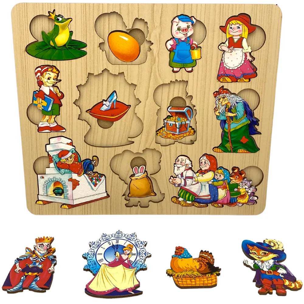 Деревянная игра состоит из основы и различных фигурных элементов, которые нужно располагать по принципу рамок и вкладышей.