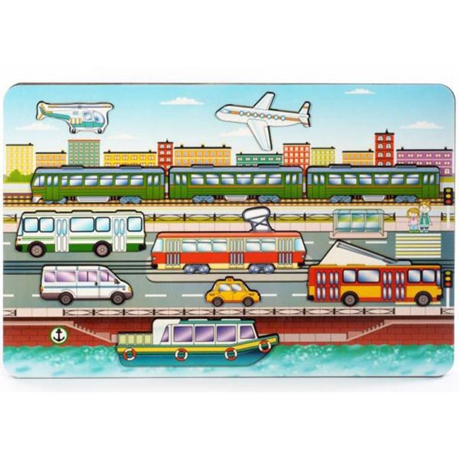 Развивающая доска "Городской транспорт" будет весьма интересна для любознательных малышей, которые хотят как можно больше узнать об окружающем мире. На красочной доске расположены фигурки-вкладыши - автомобиль, самолет, трамвай и другие средства передвижения, водные, наземные и воздушные. Вставляя картинки в отверстия нужной формы, малыш изучит название и внешний вид трансопрта,принцип его работы, и, конечно, потренирует мелкую моторику и пространственное мышление. Все элементы доски изготовлены из экологически чистого материала - дерева, хорошо отшлифованы, не имеют острых краев и зазубрин.