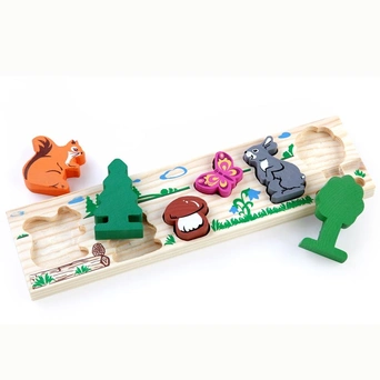 Деревянный пазл Лес 362-1 основан на принципе рамок и вкладышей. Малышу необходимо разместить красочные фигурки деревьев и животных разных размеров в соответствующую по форме рамочку. В процессе занимательной игры ребенок познакомится с понятиями цвета и размера. Цветные элементы достаточно крупные. Многообразие форм вырубки и различные размеры отдельных элементов способствуют развитию мелкой моторики у малышей. Сделанные из высококачественной древесины, они не деформируются и легко берутся в руки. Сборка головоломки способствует развитию внимания, логического мышления, усидчивости и подарит массу положительных эмоций. Все детали данной игры изготовлены из экологически чистых материалов.