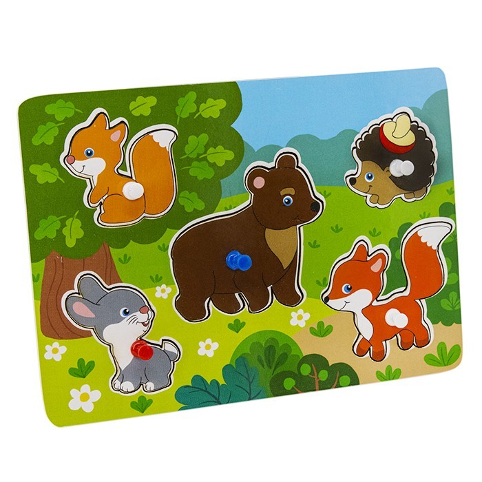 Комплектация: деревянная рамка-вкладыш, вставные фигурки в виде зверят