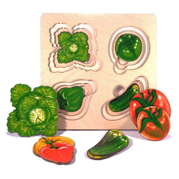 Развивающая доска "Больше-меньше: Овощи" - это трехслойная доска с вкладышами разных размеров, которые познакомят детей с различными овощами. Для каждого фрукта есть 3 вкладыша разного размера. Маленькие вкладыши прячутся под большими. Для того, чтобы вкладыши было удобнее вынимать из основы, сделаны специальные выемки. Вкладыши показывают разные стадии спелости у перца, помидора, огурца и капусты.С помощью такой игры можно познакомить ребенка с названиями фруктов, изучить понятия больше- меньше, научить сортировать предметы по виду и по размеру. Данная развивающая игрушка будет тренировать логическое мышление, мелкую моторики, усидчивость ребенка.