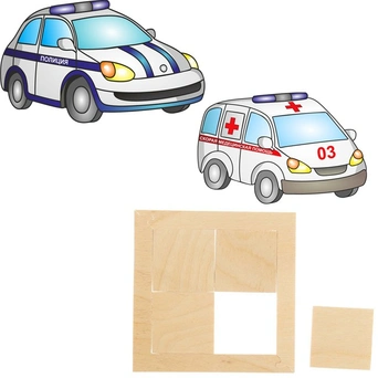 Деревянный пазл "Полиция, скорая" создан для самых маленьких ребят, которые только учатся составлять картинку из отдельных элементов. В комплект входит рамка, а также 4 квадратика, которые с двух сторон обклеиваются картинками с изображениями машин спец. служб. Составляя такой пазл, ребенок будет расширять кругозор и словарный запас, узнает о понятии "часть-целое", потренирует зрительную память, логическое мышление, мелкую моторику и усидчивость.