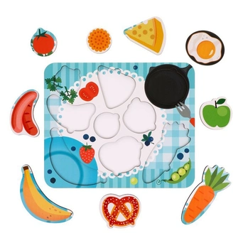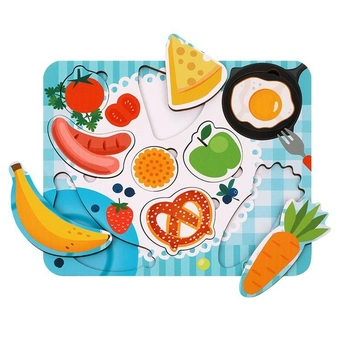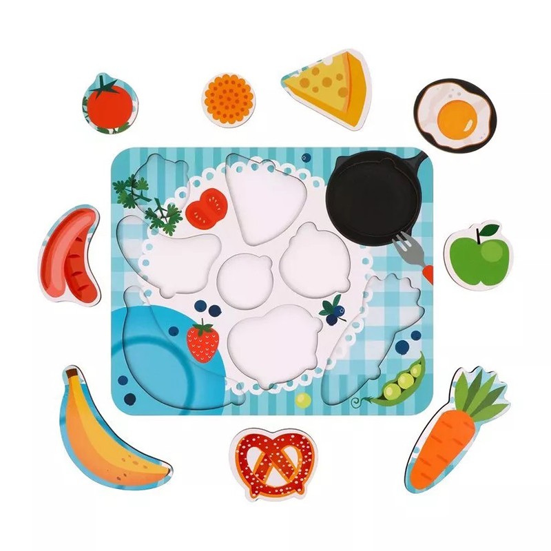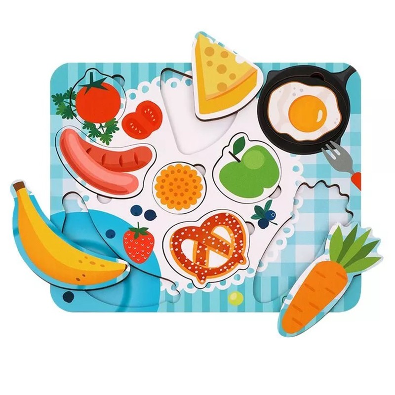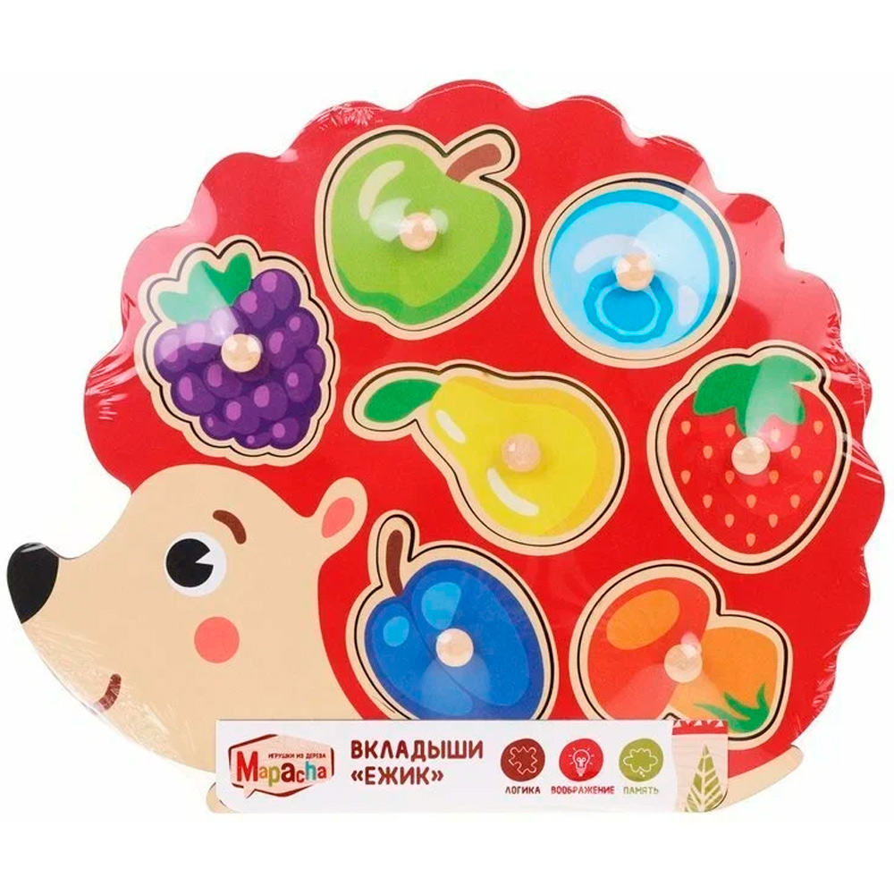 Деревянная игра состоит из основы и различных фигурных элементов, которые нужно располагать по принципу рамок и вкладышей.