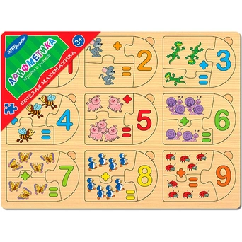 Игра из дерева "Весёлая математика. Арифметика" - развивающий деревянный планшет, который научит ребенка считать.