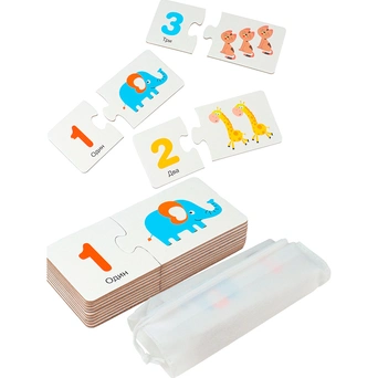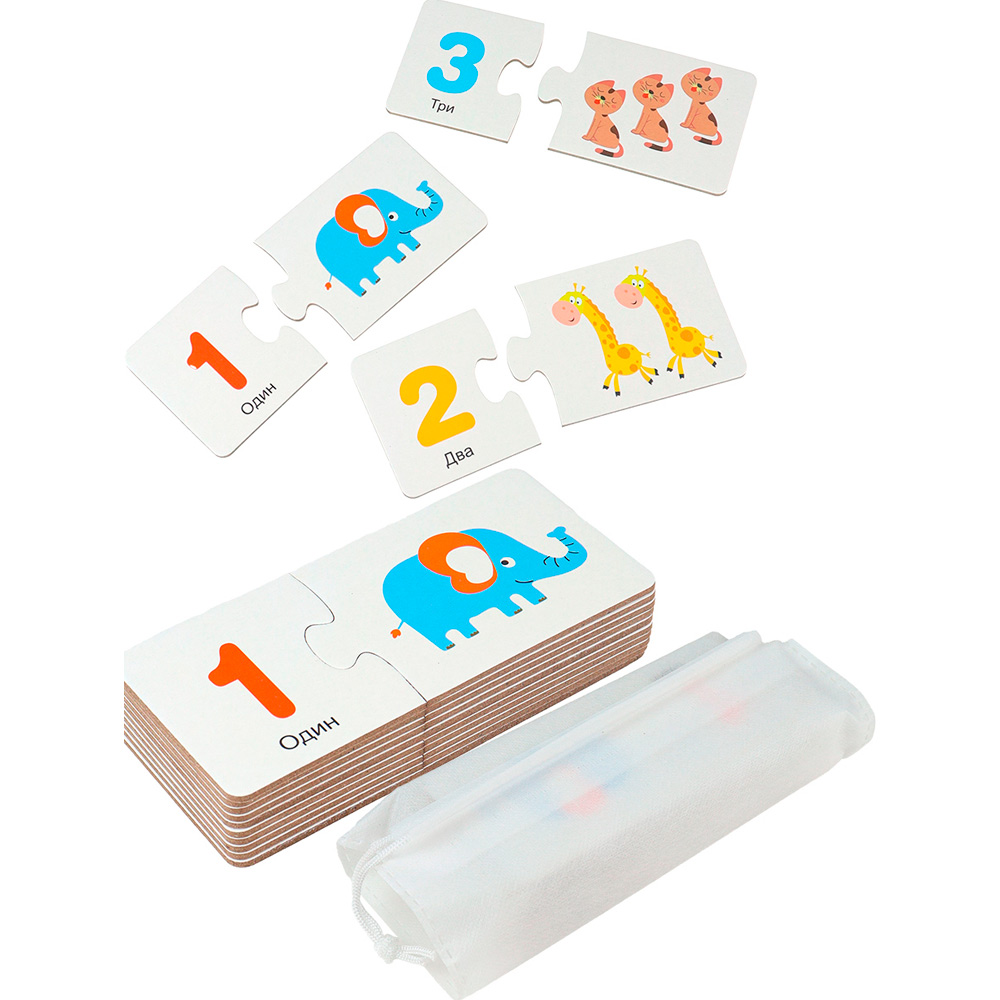 Комплектация: карточки пазлы - 10 шт, счетные палочки - 100 шт, карточки - 50 шт, мешок - 1 шт
