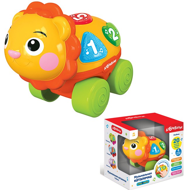 Оригинальная яркая музыкальная игрушка-каталка с различными функциями - прекрасный подарок малышу. Она предназначена для активных игр и развития мелкой моторики и координации движений. Яркая расцветка развлечет малыша и привлечет его внимание. Игрушка учит пониманию причинно-следственной связи, помогает тренировать моторику и координацию движений, восприятие формы и цвета. Музыкальная игрушка оборудована кнопками, нажимая на которые можно прослушать мелодии. Работает от батареек. Игрушка привлекает внимание и способствует развитию тактильного, зрительного и слухового восприятия малыша. Игрушки сделаны из прочного и безопасног