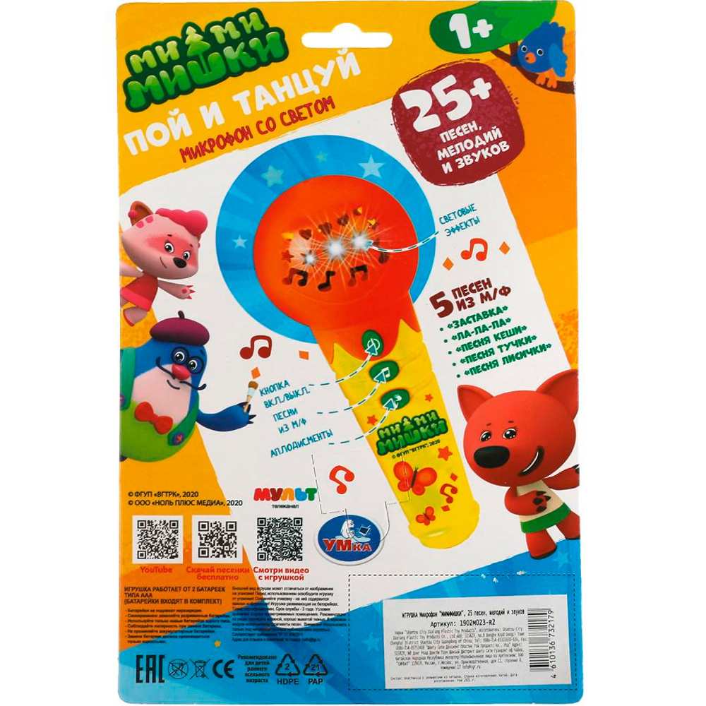 • Оригинальный яркий микрофон предназначен для активных игр и развития мелкой моторики и координации движений.