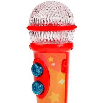 Оригинальный яркий микрофон предназначен для активных игр и развития мелкой моторики и координации движений. Яркая расцветка развлечет малыша и привлечет его внимание. Игрушка учит пониманию причинно-следственной связи, помогает тренировать моторику и координацию движений, восприятие формы и цвета. Музыкальный микрофон оборудован кнопками, нажимая на которые можно прослушать мелодии. Работает от батареек. Игрушка привлекает внимание и способствует развитию тактильного, зрительного и слухового восприятия малыша. Игрушки сделаны из прочного и безопасного материала.