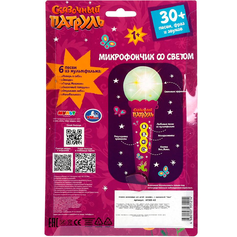 Музыкальный микрофон оборудован кнопками, нажимая на которые можно прослушать мелодии.
