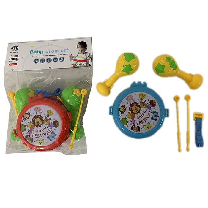 Набор игрушечных музыкальных инструментов станет отличным подарком для юных музыкантов.
