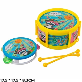 Комплектация: барабан, 2 палочки, ремень, бубенМатериал изделия: пластик, текстиль
