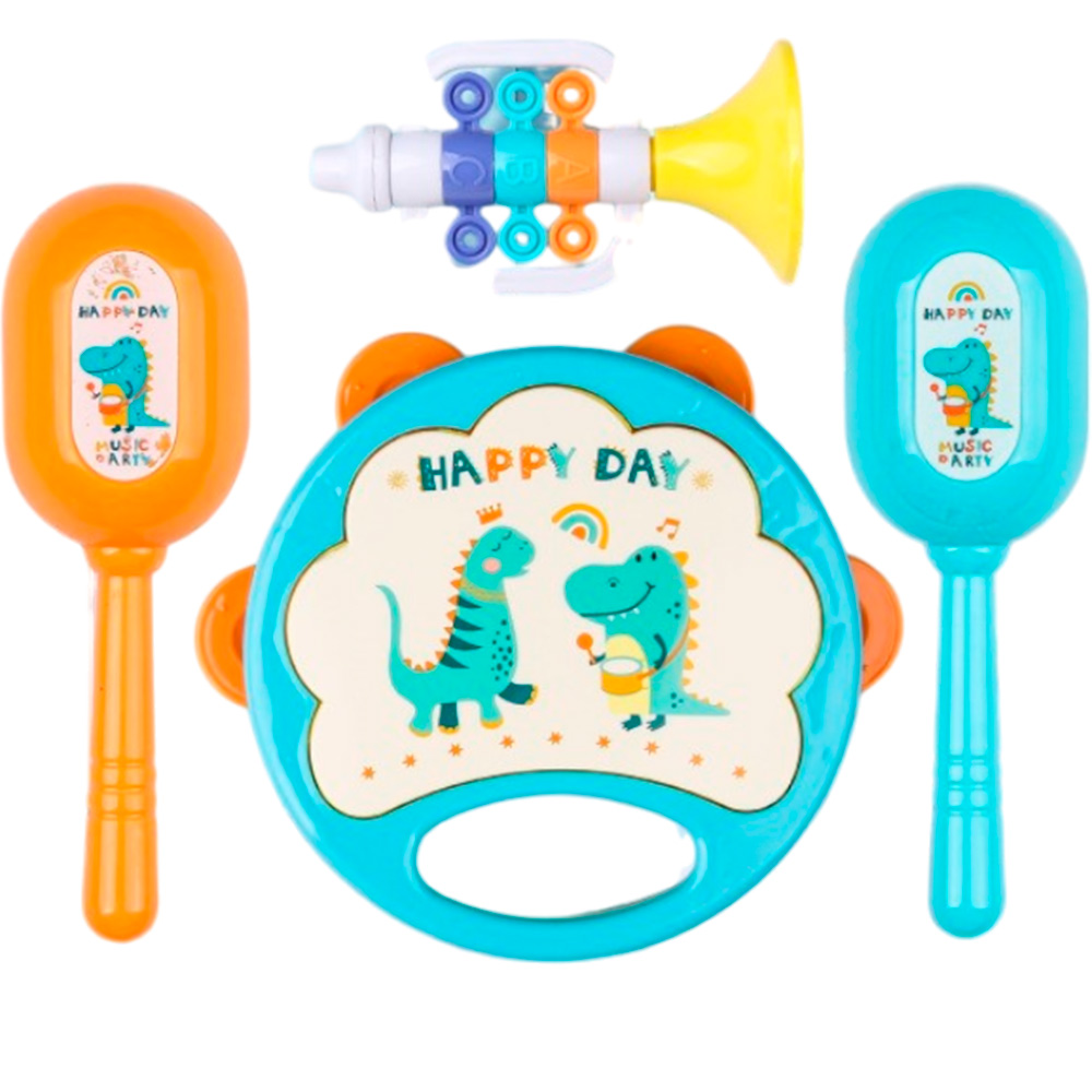 Набор игрушечных музыкальных инструментов станет отличным подарком для юных музыкантов.