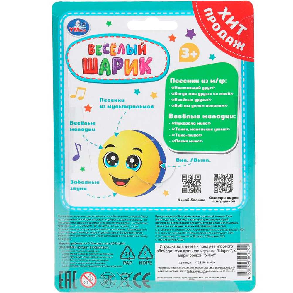 Игрушка с движением «Весёлый шарик» ТМ «УМка» станет прекрасным подарком для ребёнка.