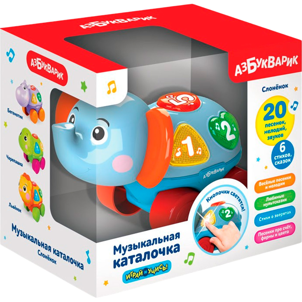 Оригинальная яркая музыкальная игрушка-каталка с различными функциями - прекрасный подарок малышу. Она предназначена для активных игр и развития мелкой моторики и координации движений. Яркая расцветка развлечет малыша и привлечет его внимание. Игрушка учит пониманию причинно-следственной связи, помогает тренировать моторику и координацию движений, восприятие формы и цвета. Музыкальная игрушка оборудована кнопками, нажимая на которые можно прослушать мелодии. Работает от батареек. Игрушка привлекает внимание и способствует развитию тактильного, зрительного и слухового восприятия малыша. Игрушки сделаны из прочного и безопасног