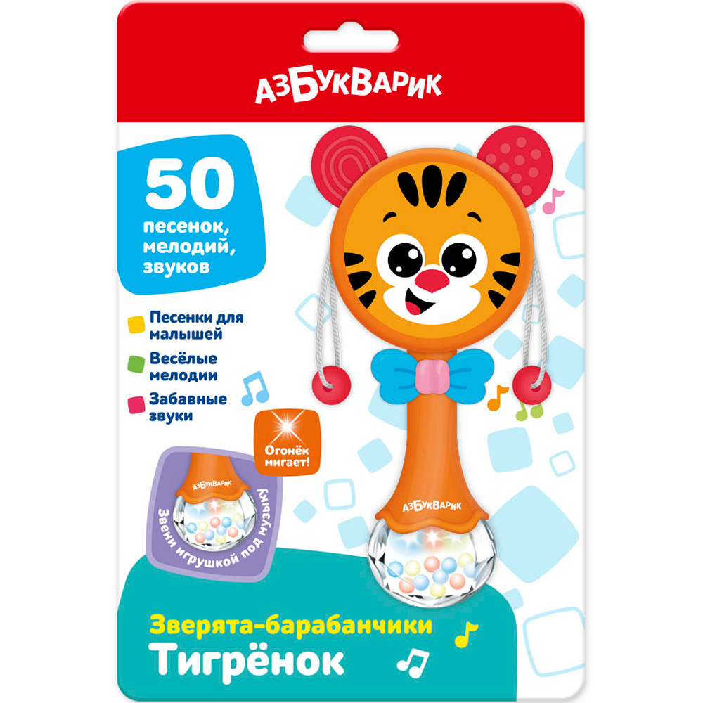 Традиционная игрушка для самых маленьких – теперь с музыкальной кнопочкой! Милый тигренок из серии «Зверята-барабанчики» подарит ребенку отличное настроение!