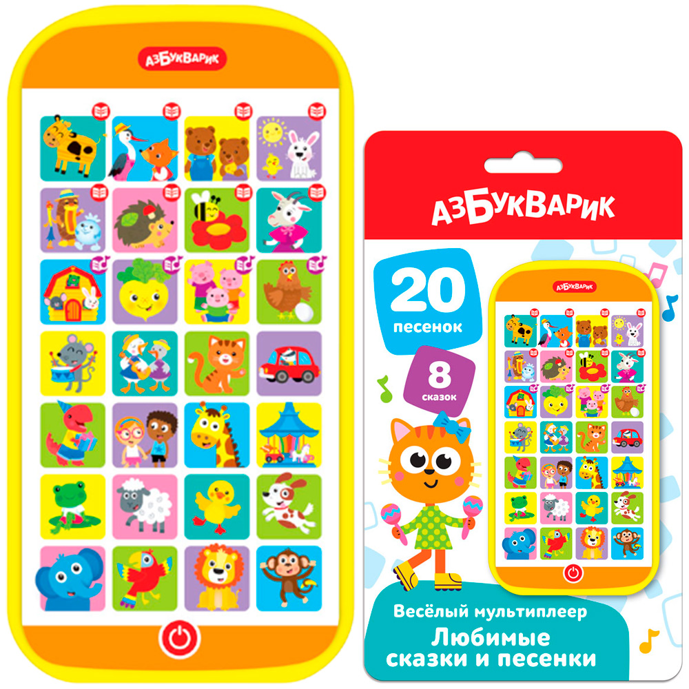 Воспроизводит истории про Умку и Мамонтёнка, выучить забавные стихи, спеть веселые песенки: "Зарядка", "Два веселых гуся", "Каравай", "Весёлая карусель" и другие.