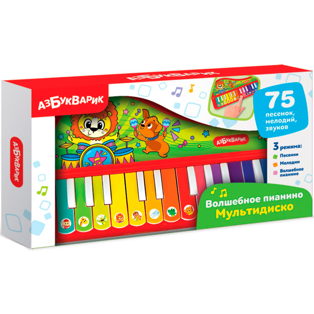 Волшебное пианино «Мультидиско» с ярким привлекательным дизайном создано специально для маленьких детских ручек.