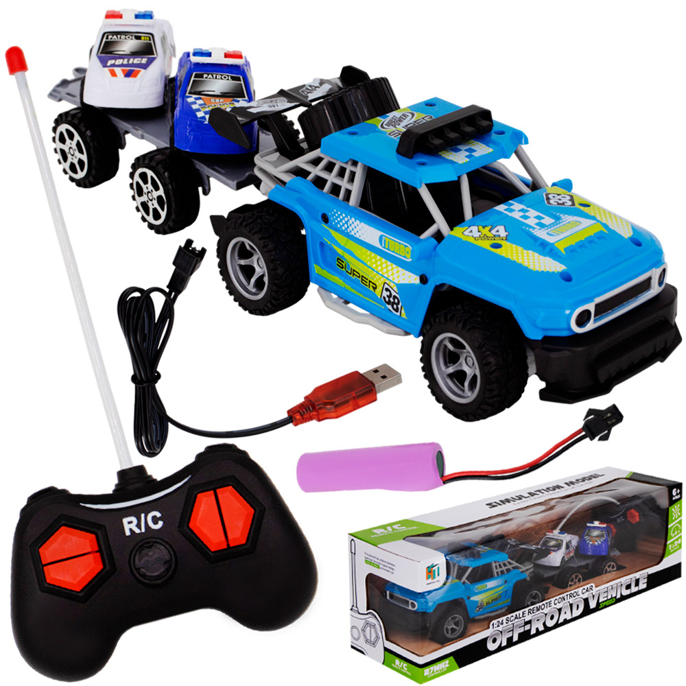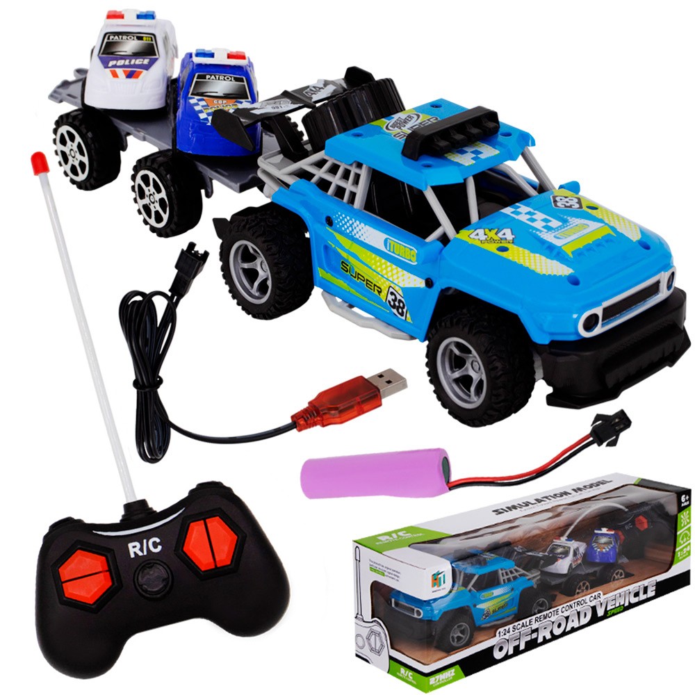 Комплектация: машинка автовоз - 1 шт, пульт управления - 1 шт, машинки - 2 шт, аккумулятор - 1 шт, USB кабель - 1 шт