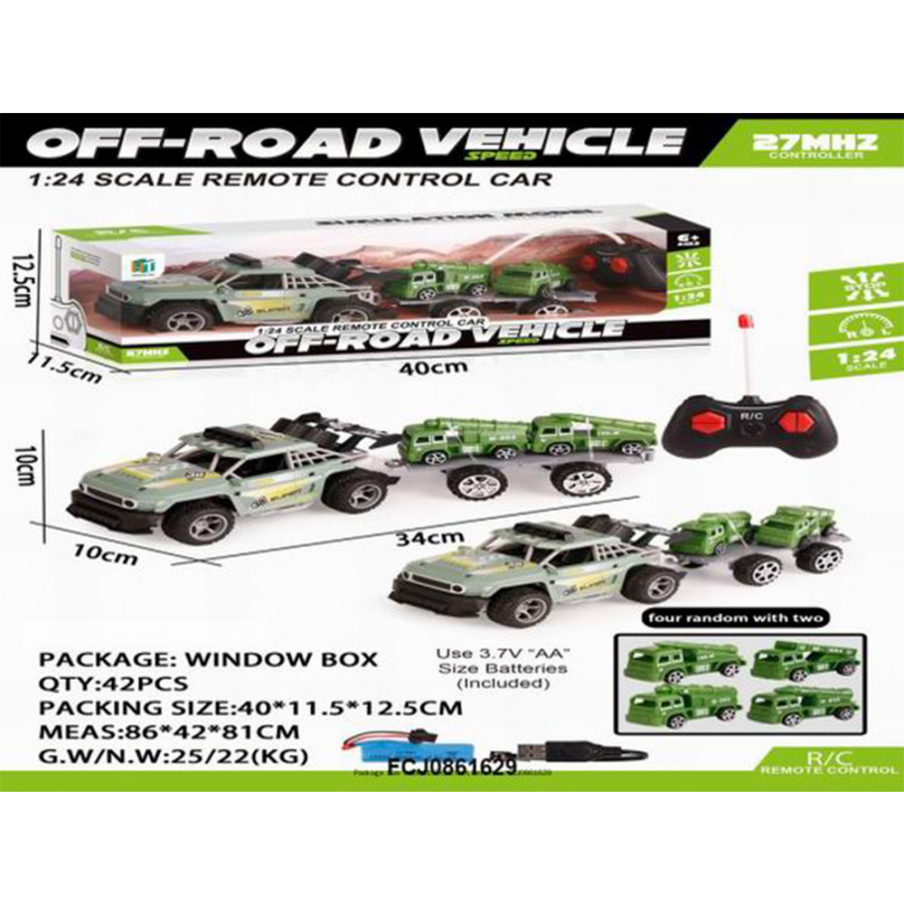 Комплектация: машинка автовоз - 1 шт, пульт управления - 1 шт, машинки - 2 шт, аккумулятор - 1 шт, USB кабель - 1 шт