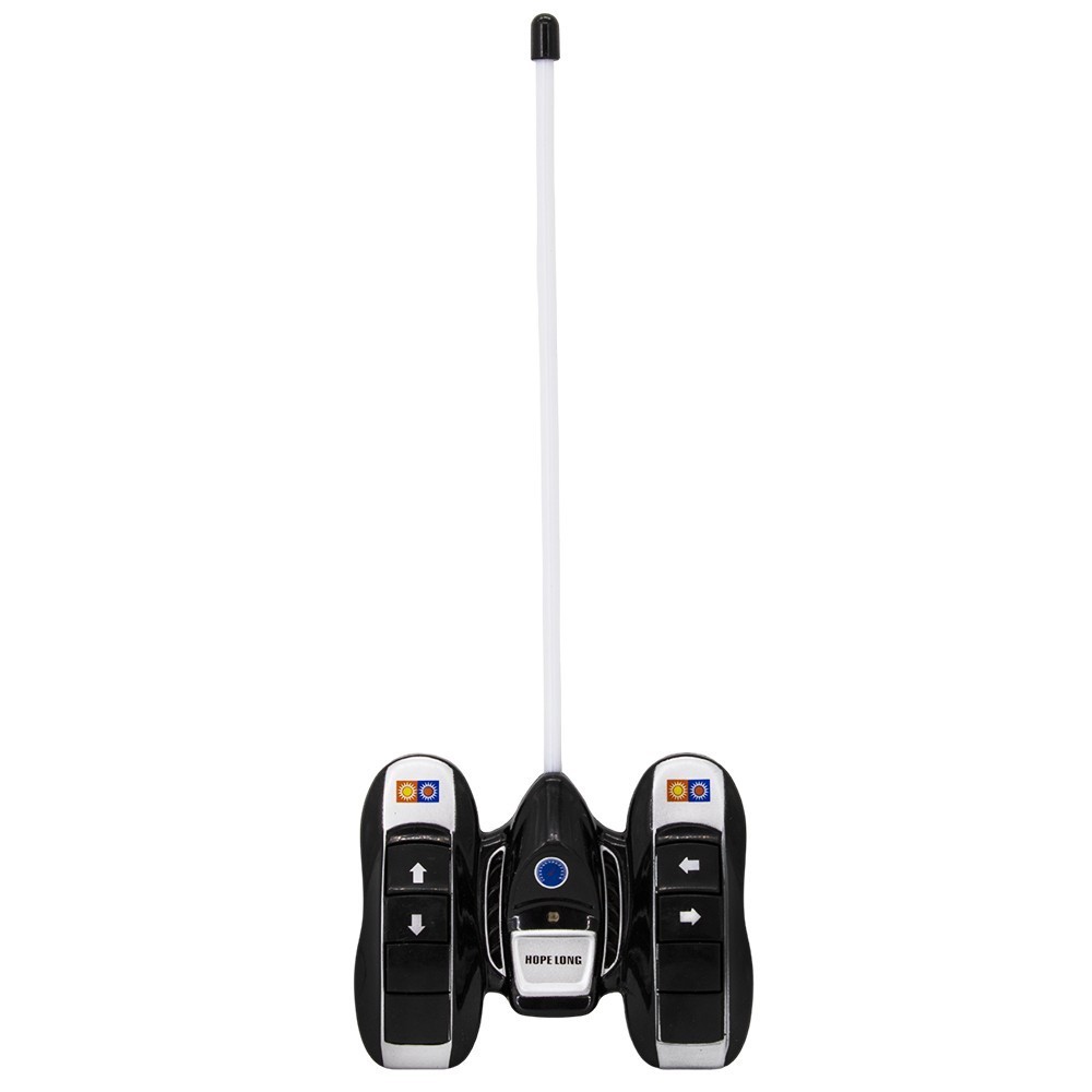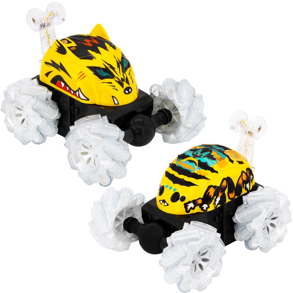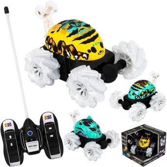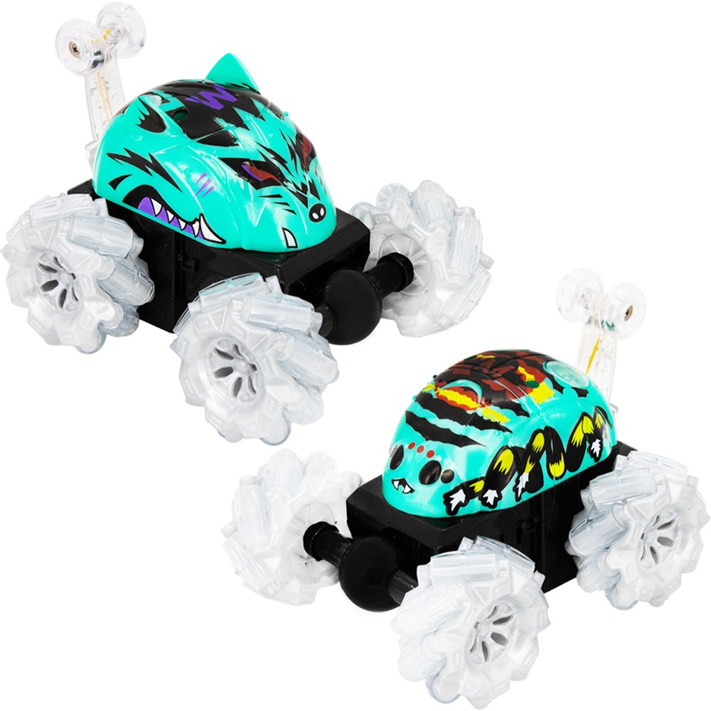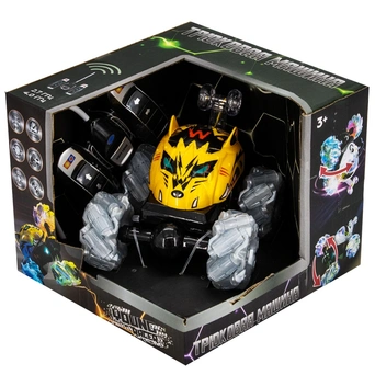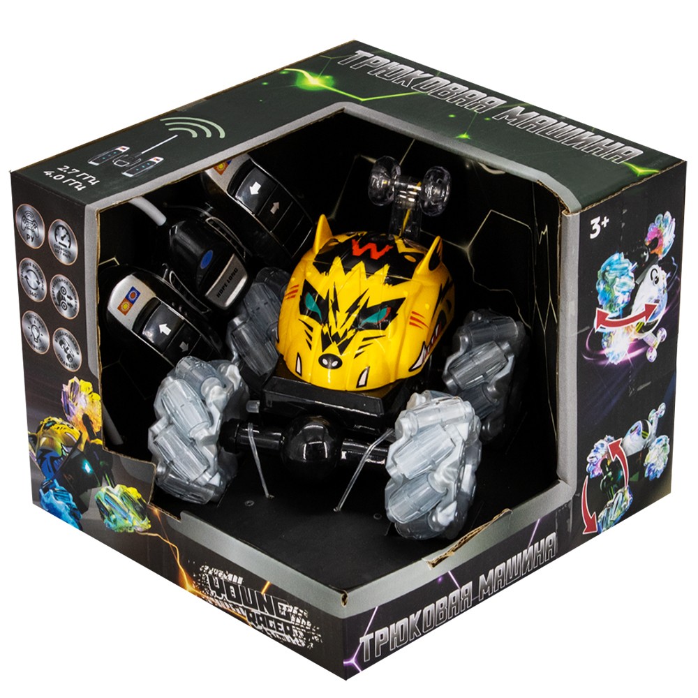 Машина имеет современный, уникальный дизайн с ярким принтом. Корпус надёжный и ударопрочный, поэтому не бойтесь преодолевать опасные препятствия, сметая всё на своем пути. Большие, цепкие колёса способны проехать любое бездорожье. Одно из ключевых особенностей является, что машина может практически выполнять акробатические трюки – вращаться по часовой и против часовой стрелки, а также совершать поездку на задних к