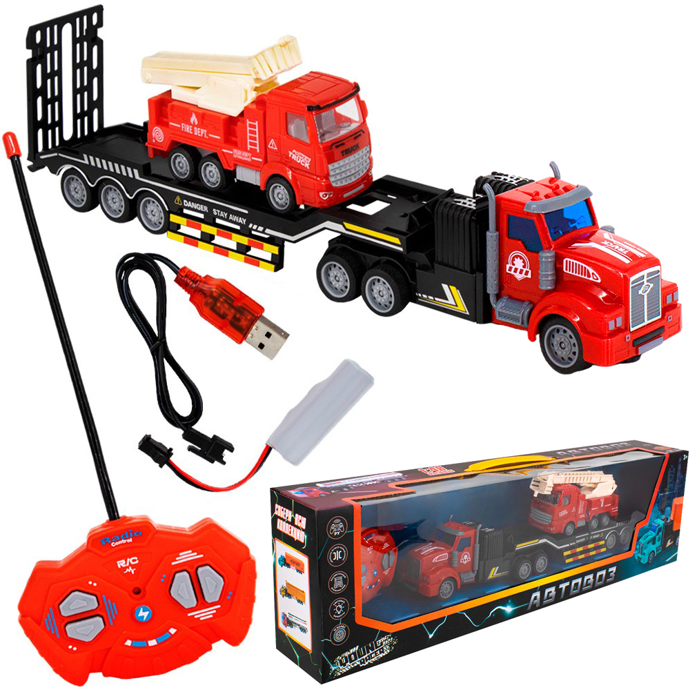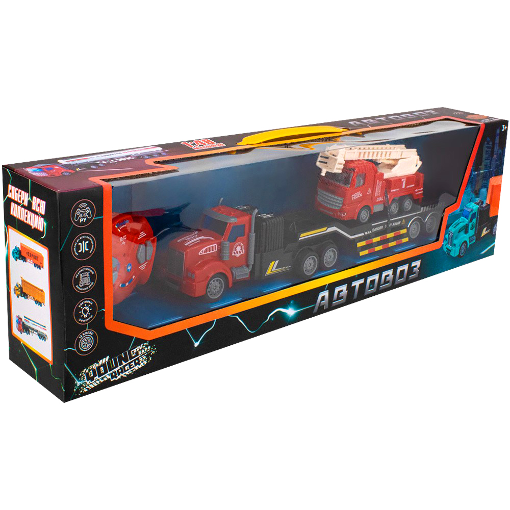 Комплектация: автовоз — 1 шт., машинка — 1 шт., пульт управления — 1 шт., аккумулятор — 1 шт., USB-кабель — 1 шт.