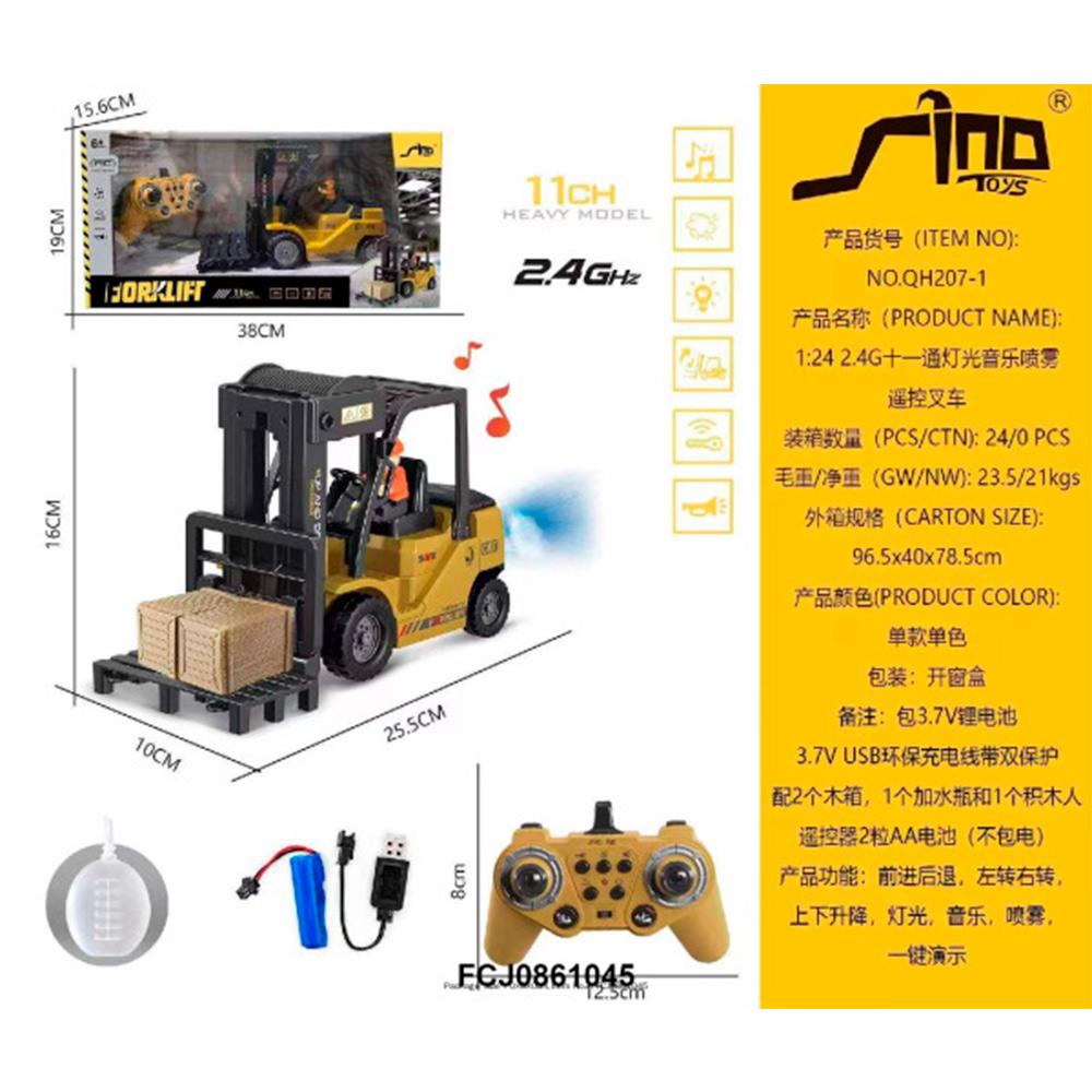 Комплектация: погрузчик - 1 шт., пульт ДУ - 1 шт., аккумулятор - 1 шт., USB-кабель - 1 шт., бутылочка - 1 шт., ящик - 2 шт.