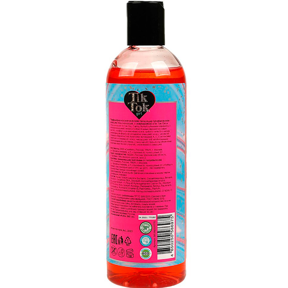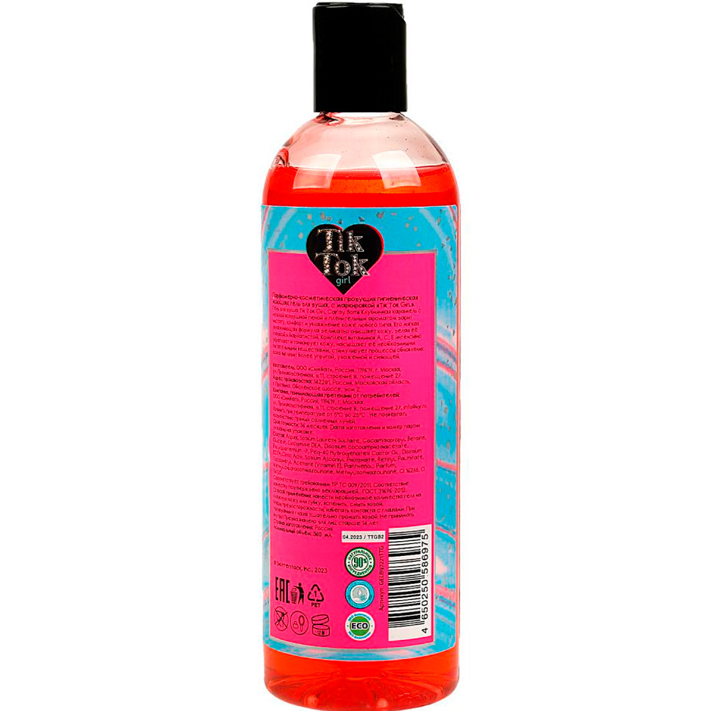 Гель для душа «TIK TOK GIRL GEL. Candy Bomb. Клубничная карамель» для бережного ухода за кожей.