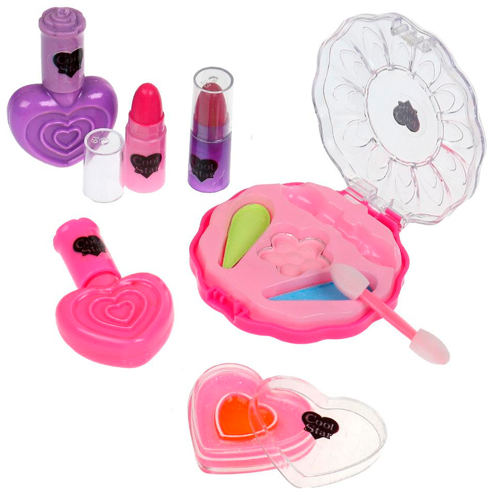 Комплектация: косметичка-футляр, тени для век, блеск для губ, помада, аппликатор, лак для ногтей.