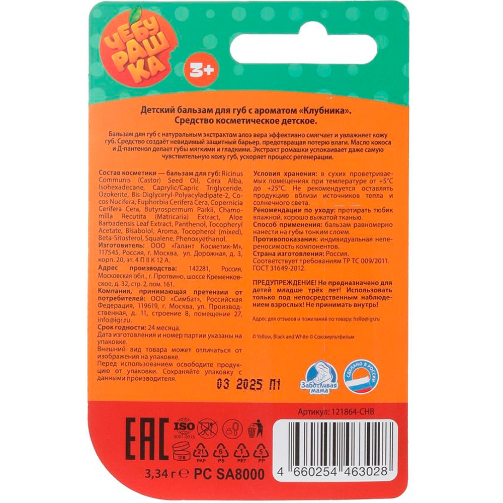 Материал: пластик, пчелиный воск, натуральные экстракты, витамин Е, парфюмерная композиция