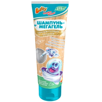 Шампунь-мегагель «Перламутровый золотой» серии «Космический» предназначен для деток старше 3 лет.