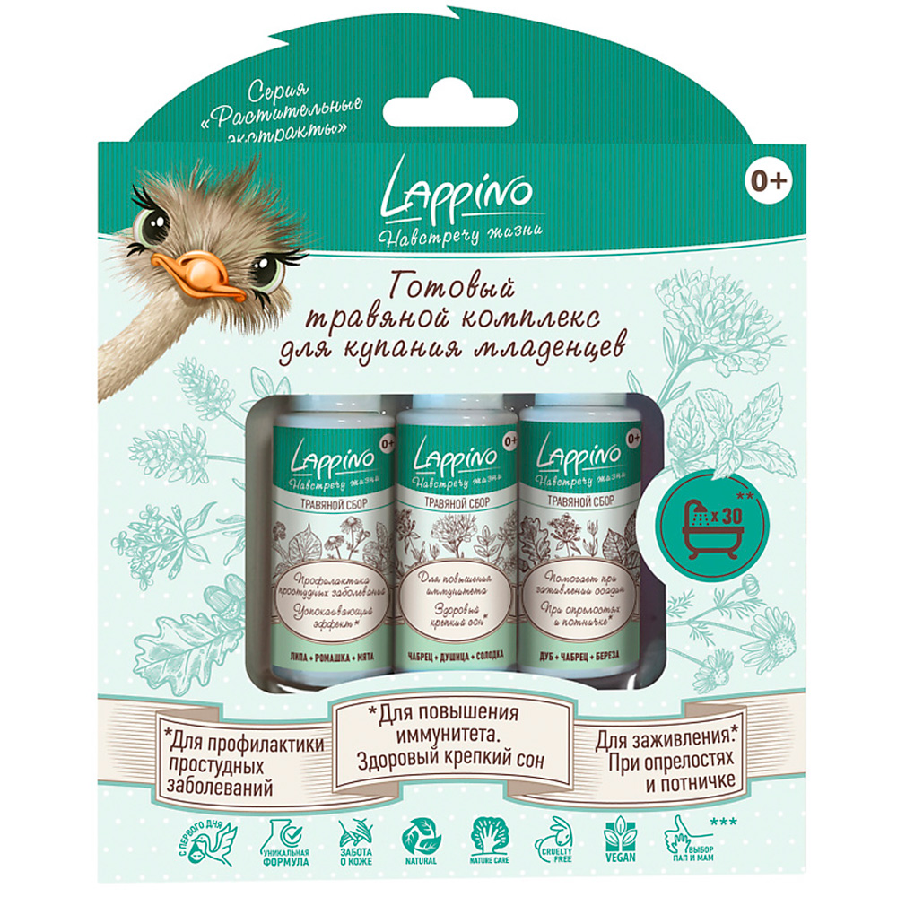 Набор экстрактов для купания от Lappino можно использовать с первых дней жизни младенца.
