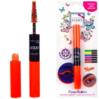 Тушь и подводка УльтраФиолет оранжевый неоновый от LUCKY – качественная детская косметика для создания необычного светящегося образа.