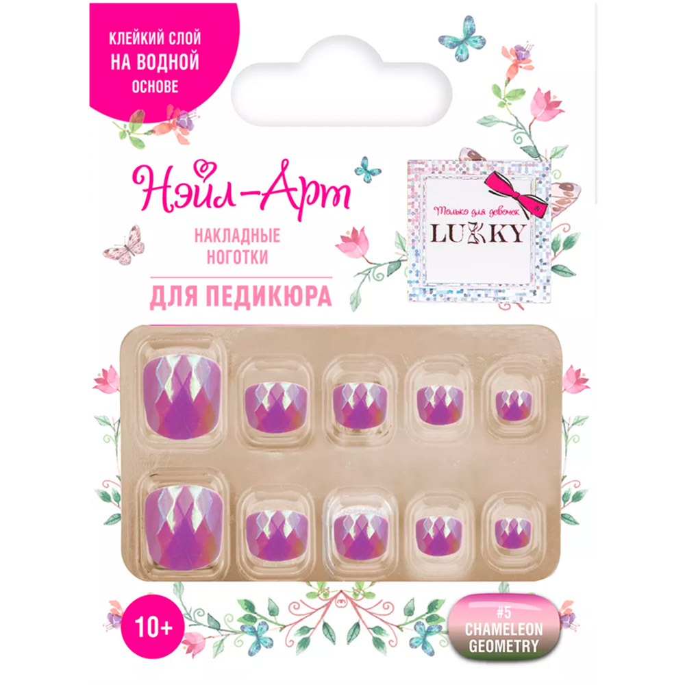 Многоразовые накладные ногти детские для педикюра на водной клеевой основе Lukky Нэйл-Арт набор Pedicure style – это мгновенное обновление ноготков для девушек и девочек.