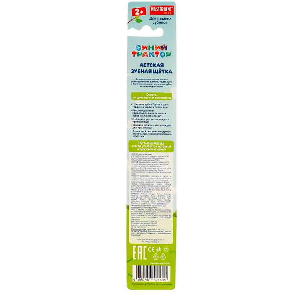 Детская зубная щётка на присоске «Синий Трактор» ТМ «Заботливая мама» разработана специально для малышей от 2-х лет.