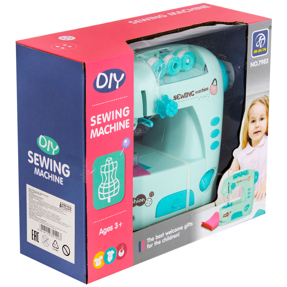 Комплектация: швейная машина - 1 шт., катушка с нитками - 3 шт., лоскут ткани - 3 шт., сантиметр - 1 шт., нитевдеватель - 1 шт., инструкция - 1 шт.