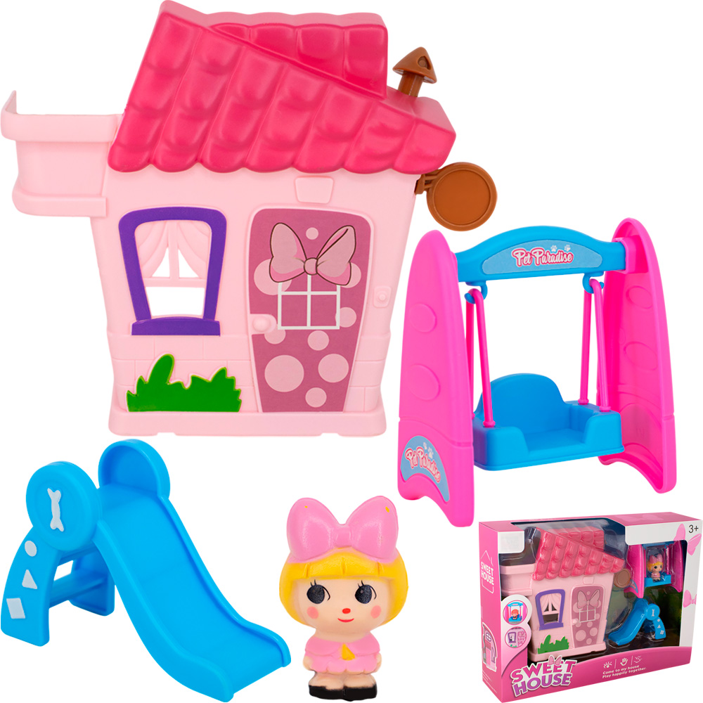 Комплектация: кукольный дом - 1 шт, горка - 1 шт, качель - 1 шт, кукла - 1 шт