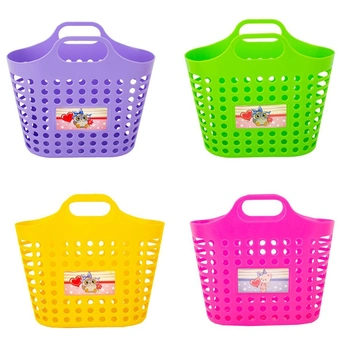 Яркая и прочная сумка-корзинка подойдет для игр в магазин, для хранения игрушек. Можно в ней хранить игрушки для ванной или песочницы - благодаря отверстиям, сумка будет проветриваться, а песок и вода спокойно вытекут, оставив игрушки сухими и чистыми. Сумка-корзинка оборудована двумя небольшими литыми ручками.