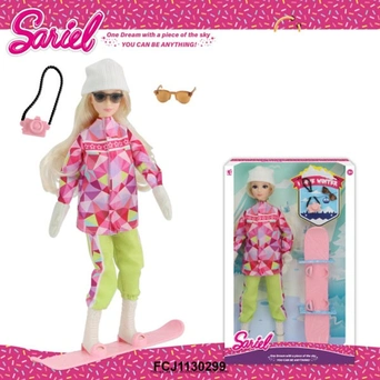 Комплектация: кукла - 1 шт, сноуборд - 1 шт, аксессуары - 2 шт.