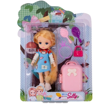 Комплектация: кукла - 1 шт., платье - 1 шт., ботинки - 1 пара, чемодан - 1 шт., сумочка - 1 шт., расческа- 1 шт., зеркало - 1 шт., ободок - 1 шт.