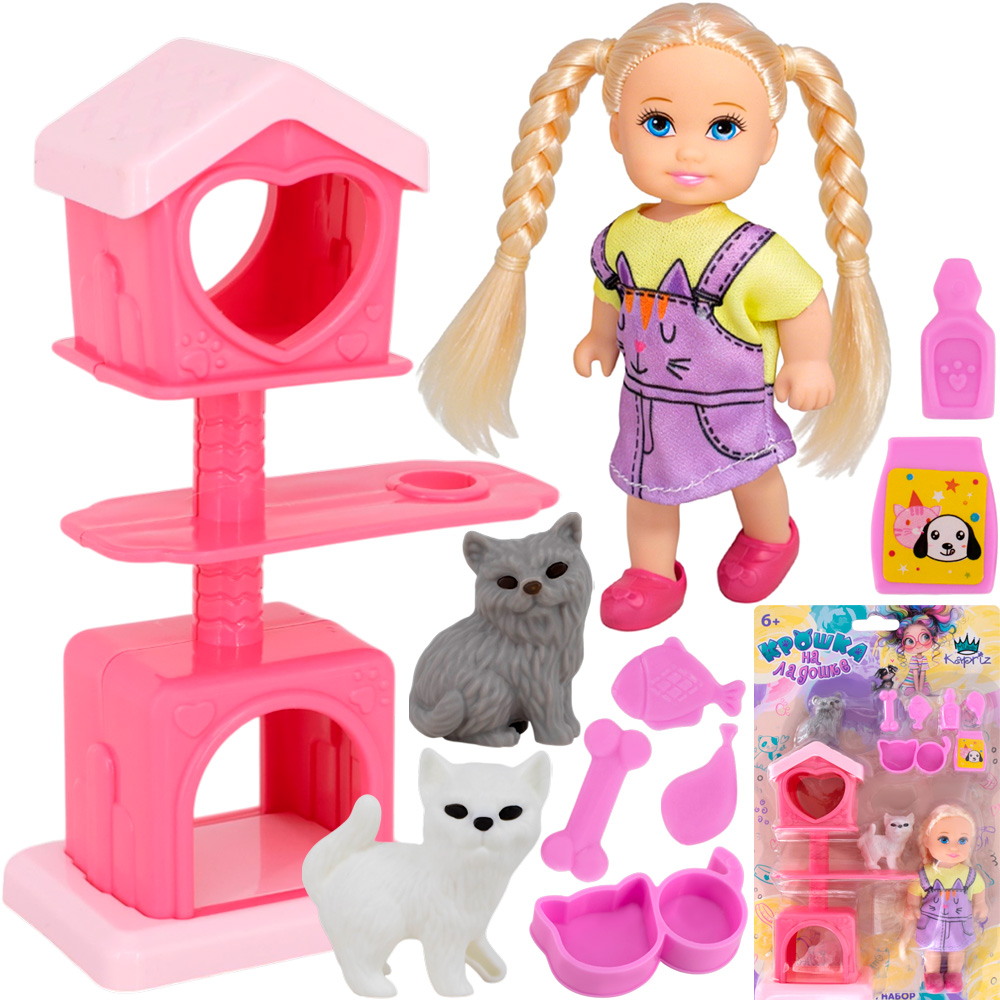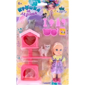 Комплектация: кукла - 1 шт, игровые аксессуары - 7 шт, фигурки животных - 2 шт, домик - 1 шт