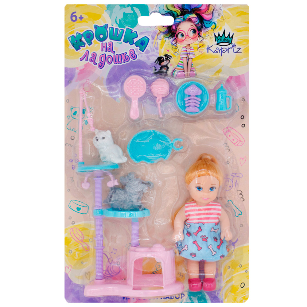 Комплектация: кукла - 1 шт, игровые аксессуары - 6 шт, фигурки животных - 2 шт, домик - 1 шт